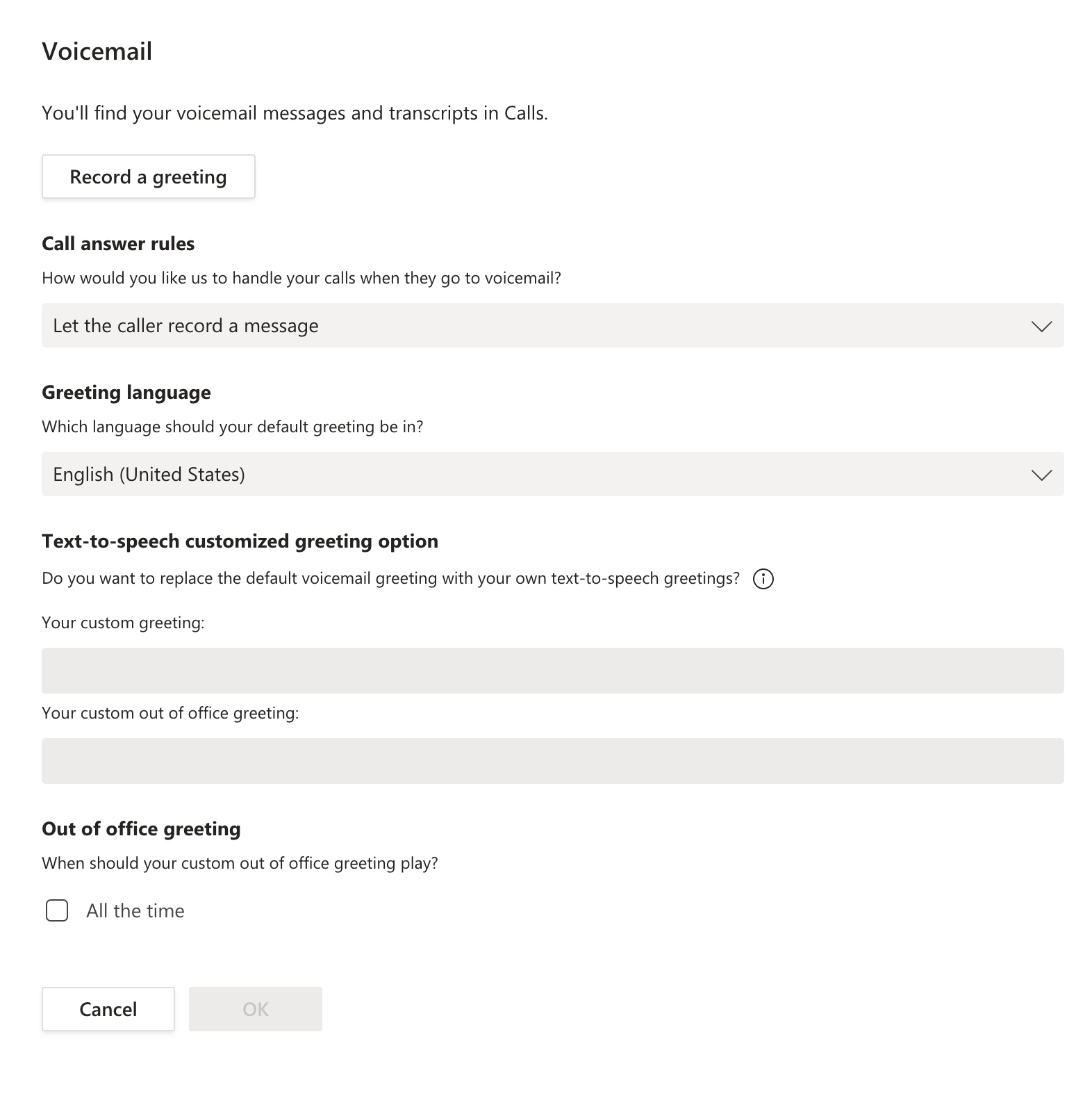 You will now have the several options to personalize your voicemail settings (record a voicemail, out of office greetings, etc.)