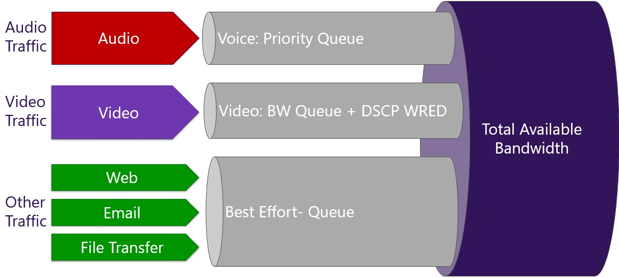 The least complex way to address these issues is to increase the size of the data connections, both internally and out to the internet. Since that is often cost-prohibitive, QoS provides a way to more effectively manage the resources you have instead of adding bandwidth. To address quality issues, we recommend that you first use QoS, then add bandwidth only where necessary.